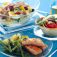 Insalata di salmone e verdurine, Insalata al salmone, Insalata di salmone, Insalata con il salmone, le patate e i fagiolini, Insalata di salmone allo zenzero, Insalata di salmone affumicato e melone