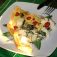Fiori di zucca fritti ripieni di alici e formaggio, gamberetti e formaggio, serviti su un pesto di rucola, Fiori di zucca ripieni per l'Italia nel piatto, Fiori di zucca fritti ripieni di alici e formaggio, gamberetti e formaggio, serviti su un pesto di rucola, Fiori di zucca alla ricotta verde con crostini, Fiori di zucca alla ricotta verde con crostini, Fiori di zucca farciti 5