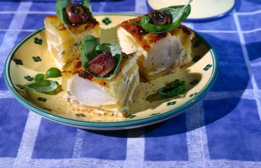 Ingredienti 4 n Acciughe O Alici 2 cu Basilico Fresco 4 n Cipollotti 2 cu Olio Di Oliva Extravergine 4 cu Panna Da Cucina 50 g Parmigiano 3 n Patate qb Pepe 2 cu Prezzemolo qb Sale 6 n Uova Preparazione 3 patate me [...]