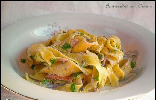 Pappardelle con salmone ed uova di lompo profumate al limone La pasta al salmone affumicato è un primo piatto facile e veloce, adatto anche ai cuochi meno esperti! Il salmone affumicato ha un gusto piuttosto deciso e non a tutti può piacere. Di solito son io quella che fa sparire dai va [...]