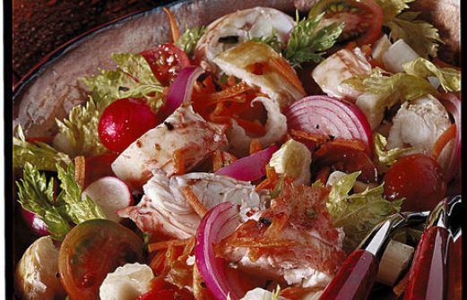 Ingredienti 1 n Carote 2 n Cipolla Rossa 2 cu Limone Succo Fresco 500 g Pomodori Ciliegia 1 mz Ravanelli qb Sale 1 n Sedano Cuore qb Tabasco 1 l Vino Bianco 1.6 kg Astice Preparazione 2 astici di circa 800 g ciasc [...]