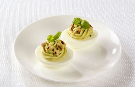 Ingredienti 1 sp Aglio 12 fo Basilico Fresco 2 cu Olio Di Oliva Extravergine qb Pepe 20 g Pinoli 150 g Ricotta Vaccina qb Sale 4 n Uova Preparazione Frulla 150 g di ricotta con i tuorli di 4 uova sode, 1 spicchio d'aglio spellato e a p [...]