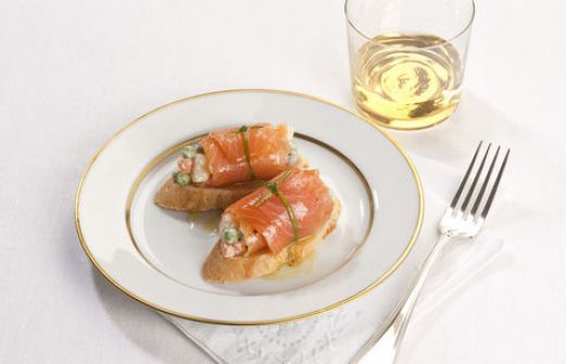 Ingredienti 12 ft Baguette 12 n Erba Cipollina qb Insalata Russa qb Limone Succo Fresco qb Pepe 12 ft Salmone Affumicato Preparazione Distribuite l'insalata russa a cucchiaiate su 12 fettine di salmone affumicato, avvolgetele a involtino, s [...]