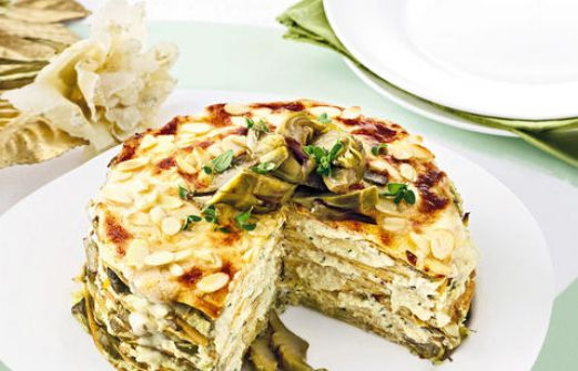 Ingredienti 1 sp Aglio 100 g Burro 8 n Carciofi 220 g Farina 100 g Grana 4 dl Latte qb Maggiorana 20 g Mandorle A Lamelle 80 g Mandorle In Polvere 250 g Mascarpone 1 dl Panna 20% Di Lipidi qb Pepe 250 g Ricotta V [...]