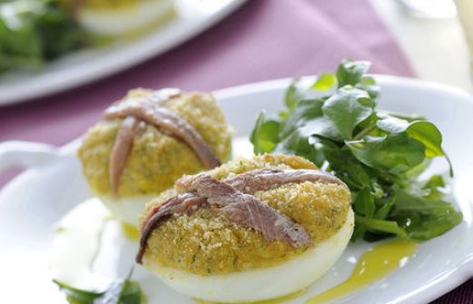 Ingredienti 8 n Acciughe O Alici Sott'olio 1 rm Aneto 50 g Burro 50 g Emmentaler 60 g Maionese 4 cu Pane Grattugiato 60 g Panna Acida 2 ci Paprika Dolce In Polvere 1 mz Prezzemolo qb Sale 10 n Uova Preparazione 10 [...]