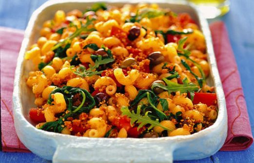 Ingredienti 2 sp Aglio 8 cu Olio Di Oliva Extravergine 80 g Olive Taggiasche 2 ft Pane Pugliese 320 g Pasta Di Semola qb Pepe 3 n Pomodori Ramati 100 g Rucola qb Sale 3 cu Sesamo Semi Preparazione 320 g di cellentani - [...]