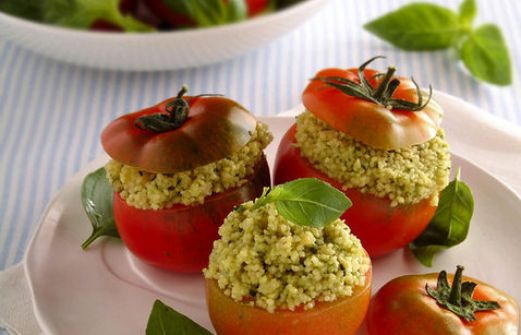 Ingredienti .5 sp Aglio 30 fo Basilico Fresco 1.5 dl Brodo Vegetale 100 g Cuscus qb Olio Di Oliva Extravergine 20 g Parmigiano .5 cu Pinoli 12 n Pomodorini Sardi qb Sale qb Sale Grosso Preparazione 12 pomodori sardi 1 [...]