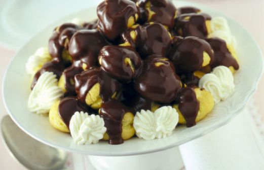 Ingredienti 100 g Burro 150 g Cioccolato Fondente 150 g Farina 2.5 dl Latte 10 g Maizena 6 dl Panna Fresca qb Sale 4 n Uova 50 g Zucchero 40 g Zucchero A Velo Preparazione Per i bigne: 150 g di farina - 4 uova - 100 g d [...]