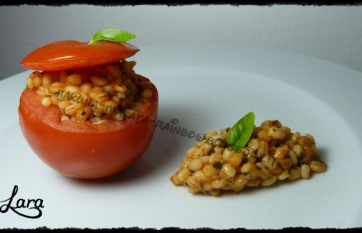 Ingredienti: 4 pomodori rotondi (grandi) 1 spicchio d'aglio sale pepe prezzemolo basilico 150 ml di orzo (oppure farro, riso) 1 cucchiaio di concentrato di pomodoro 1 cucchiaino di Bomba vaticana Delizie vaticane di Tropea (peperoncino) olio extravergine d'oliva 20 gr di [...]