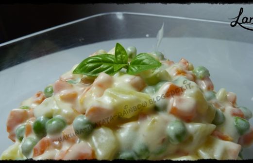 Ingredienti: 75 gr di maione allo yogurt Bontà fresca Mayò di Calvè 50 gr di piselli surgelati 50 gr di carote 100 gr di patate sale olio extravergine d'oliva aceto Per prima cosa tagliare le carote e le patate non più grandi dei piselli, è un lavoro certosino ma ci si ries [...]