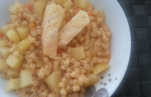 Qui il tempo continua a fare i capricci...un giorno c'è il sole, il giorno dopo piove. E quando fuori fa freddo e l'unica voglia è quella di stare spaparanzati sul divano non c'è niente di meglio di un bel piatto di pasta e patate per scaldare la pancia!