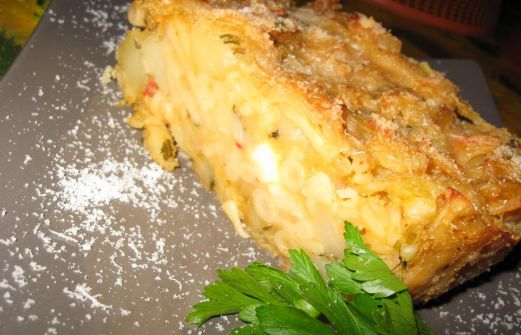 Ingredienti per 4 persone : 500 gr di patate, 250 gr di pasta formato mista corta, 200 gr di provola affumicata fresca, 100 gr di parmigiano grattugiato, una costa di sedano, mezza cipolla, 3 cucchiai di pomodoro passato, 3-4 cucchiai di olio extra vergine d'oliva, sale e pepe.