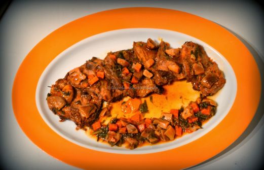 Per 4 persone: 1 kg di manzo in un unico pezzo (taglio cappello del prete) 2 carote 1 cipolla 1 gambo di sedano 300 gr di funghi porcini 50 gr di burro 3 cucchiai di olio d'oliva vino bianco per sfumare 4 cucchiai di salsa di pomodoro timo rosmarino salvia [...]