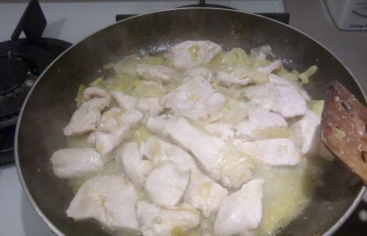 INGREDIENTI: 4 fette petto di pollo 1 porro vino bianco farina (circa 20/30 gr.) olio sale, pepe Tagliate il porro a rondelle (solo la parte bianca). Scaldate un pò di olio in una padella antiaderente e buttateci il porro tagliato. Fatelo rosolare mescolandolo di tanto [...]