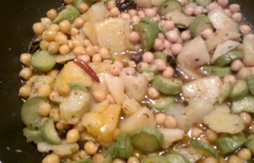 Non sapete come cambiare desitinazione ai ceci? Fateli in stufato! Il procedimento è semplicissimo, si mettono tutti gli ingredienti insieme nel tegame, si aggiunge un po' d'acqua e si fanno cuocere lentamente. Ingredienti olio evo ceci lessati non stracotti patate zucchine 1 peper [...]