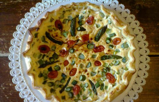 Ingredienti : 2 uova, 250 g. di ricotta, 2 cucchiaiate di peperoni grigliati e sot'olio, 1 conf ti pasta sfoglia, 1 mazzo di asparagi, pomodorini, pepe e sale. Mettete in un contenitore la ricotta, le 2 uova, un pizzico di sale e pepe e amalgamate bene. Aggiungete le 2 cucchiaiate di pepe [...]