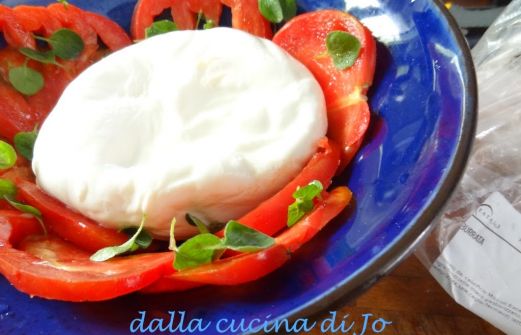 Comunque si decida, servire una bella burrata di mezzo chilo con pomodori costoluti ben maturi, è un gran piacere per il palato. Qualche fogliolina di basilico, buon olio extravergine (ho scelto il Carusìa bio di Viragì), p [...]