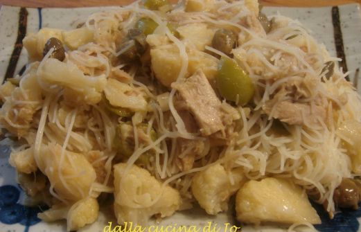 Non è che io non voglia cucinare un canonico piatto di pasta al pomodoro ma, come spesso ripeto, mi basta aprire la dispensa per inventare accostamenti insoliti con cui realizzare un primo piatto. Ho avanzato un po' di cavolfiore dopo che ho fatto delle frittelle in pastella, è già sbollentato [...]