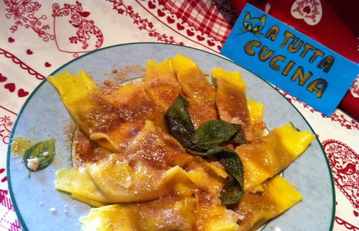 Ingredienti: 300g farina OO, 3 uova, 300g zucca a pezzi, 80g grana grattuggiato, 150g prosciuto cotto tritato, 100g burro, 8 foglie di salvia, 1 cucchiaino di cannella in polvere, noce moscata, pepe, sale Allestire una pasta soda liscia e compatta, amalgamando la farina con le uova sbattu [...]