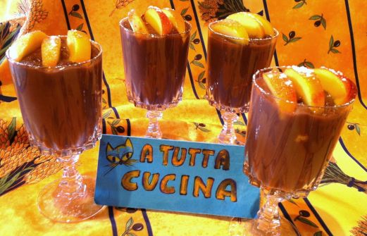 Ingredienti: 3 00ml latte, 200ml succo alla pesca, 150g zucchero, 50g farina OO, 70g cioccolato al latte grattuggiato, 1 uovo, 4 savoiardi, 1 pesca tagliata in 12 fettine, zucchero a velo Sbattere l'uovo a crema con lo zucchero, unirvi la farina setacciata e diluire a filo con il latte e [...]