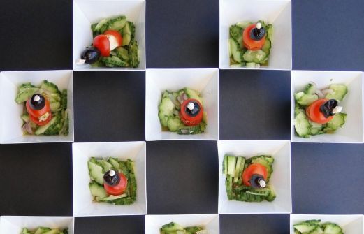 Si vede che l'insalata greca mi piace tantissimo???? Bhèèè, l'ho proposta in tutte le salse: semplice , negli involtini di melanzana , nel pane arabo , come ripieno nei pomodorini ....e ora, come finger food, destrutturata, però :-).
