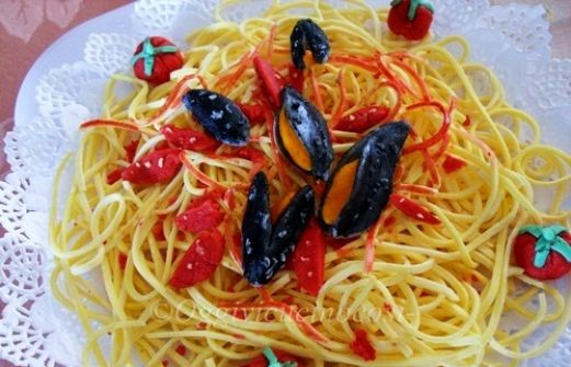 Il primo piatto estivo per eccellenza. Spaghetti cozze e pomodorini .Per una Dolce "Spaghettata"! Cari amici , ecco il mio topper cake ispirato dalle cozze "vere" ( qui ). Gli spaghetti con cozze e pomodorini. Non sono certo una cake designer, ma mi diverto tanto a fare esperimenti [...]