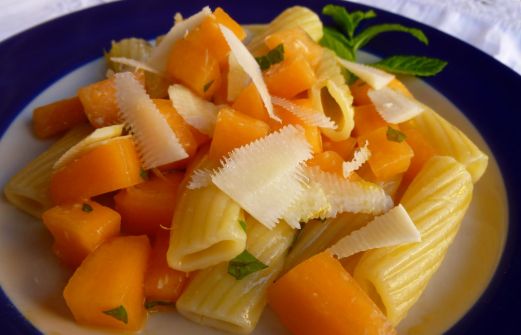 Ingredienti per 4 persone: 360 gr. di tortiglioni (o fusilli o altri tipi di pasta corta) 2 piccoli meloni 70 gr. di pecorino a scaglie 1 scorza grattugiata di mezzo limone 2 rametti di menta 1 cucchiaino di pepe rosa in grani Olio d’oliva extravergine q.b. [...]
