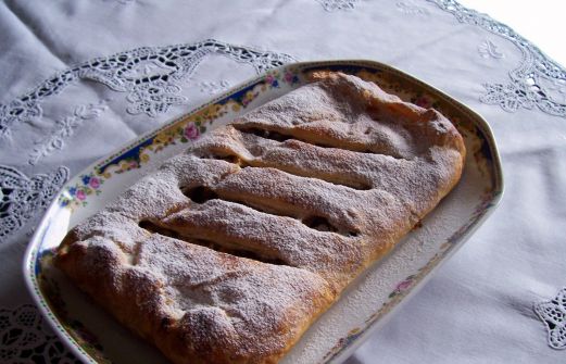Ingredienti per 6 persone Per una sfoglia di circa 250 gr.: 100 gr. di farina 100 gr. di burro 1 dl di acqua Sale q.b. Per il ripieno: 4 mele renette 100 gr. di uvetta sultanina 100 gr. di pinoli o di noci 3 o 4 biscotti secchi tipo gallette 3 cucchiai di zucchero di canna o se preferit [...]