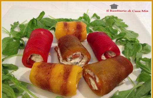 La ricetta di questi involtini di peperoni l'ho presa da una vecchia rivista di In Tavola. Ingredienti per 4 persone: 3 peperoni, 1 rosso, 1 giallo, 1 verde 200 gr. di robiola fresca 30 gr. di capperi sottaceto (io ho usato quelli sotto sale) 1 cucchiaio di origano S [...]