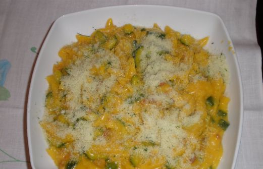 Ecco una ricetta dimostrata ad un corso di cucina Bimby, a cui ho recentemente partecipato. E' un primo di effetto, per il colore e per il gusto saporito!! Ingredienti: 1/2 cipolla (o 1 intera piccola) 100 g di speck in un'unica fetta 3 zucchine 200 g di pennette dado bimby 2 bustine [...]