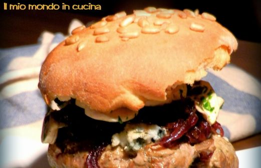 Ingredienti per 2 persone : 2 panini per hamburger ( qui la ricetta) - 40 gr. roquefort - lattughino - olio e.v.o. - sale - pepe - succo di limone - aceto - 3 o 4 funghi champignon - prezzemolo tritato