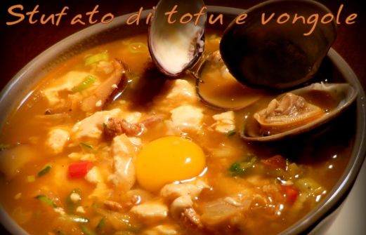 Ingredienti per 2 persone : 1 confezione di.tofu morbido (250-300 gr) - 60 gr. carne di maiale - ¼ tazza di Kimchi - 4 funghi shitake - ⅓