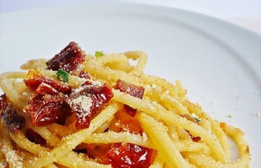 Ingredienti per 4 persone : 400 gr di vermicelli, 300 gr di pomodori secchi sott'olio sgocciolati, una manciata di olive nere, origano, 1 cipolla, olio extra vergine di oliva, a piacere un po' di pecorino grattugiato, due foglie di basilico. Procedimento : In una padella ampia far soffriggere [...]
