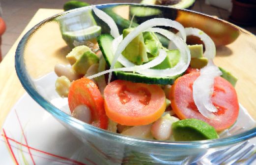 Insalata vegana con pomodori e fagioli cannellini con avocado