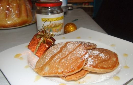 La mattina delle domeniche speciali o della vigilia.. ma anche i giorni dopo Natale.. mi alzo un po' prima del mio maritino e gli preparo o i waffles oppure questi pancake cioccococco.. secondo una sua specifica richiesta.