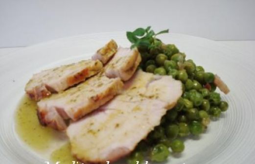 Quando preparo quest'arrosto lo servo sempre con dei pisellini alla pancetta come contorno per addolcire il gusto limonato della salsa di accompagnamento.