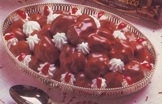 Ingredienti per 6 persone: Panna liquida freschissima gr. 600 cioccolato fondente gr 125 zucchero a velo gr. 75 24 profiterole già cotti 8 ciliegine rosse al Maraschino. Preparazione: Tagliuzzate finemente il cioccolato, quindi mettetelo in un tegamino e fatelo fondere mettendo il rec [...]