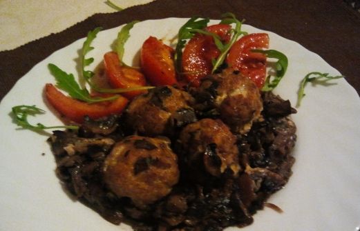 Le polpette sono sempre una delizia, e si possono preparare in tanti modi diversi, oggi ho vi presento un secondo gustoso e completo dove le polpette sono accompagnate a dei funghi champignon, il tutto sfumato con del vino bianco e terminando la cottura in forno.