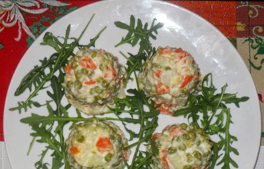 Le origini dell'insalata russa sono avvolte nel mistero, c'è chi dice che abbia origini italiane, chi invece afferma che l'abbia creata un cuoco belga nella metà dell'800 nelle cucine dell'hotel Hermitage di Mosca, fatto sta che nel 1881 l'Artusi già ne parlava come un piatto di moda.
