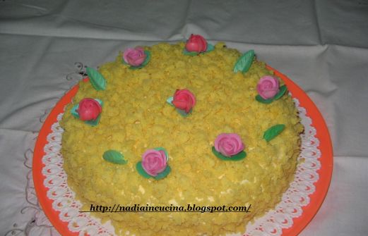 la mia torta mimosa ......questa volta però invece di mettere l'ananas ho usato le pesche ...... speriamo sia buona ..... poi vi farò sapere