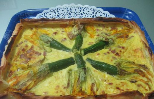 Ingredienti: 1 rotolo di pasta sfoglia 250 ml di panna fresca 150 g di yogurt intero 100 g di emmentaler 4 cucchiai di parmigiano grattugiato 2 uova 100 g di prosciutto cotto 8-10 fiori di zucchina 1 cipollotto olio extravergine di oliva sale e pepe qb Preparazione: Lavate [...]
