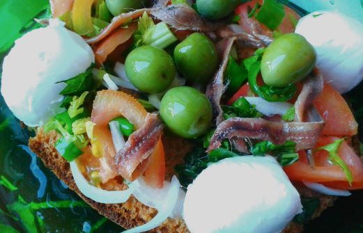 Questa tra tutte è quella che preferisco ..ne ho gia' postata una simile... INGREDIENTI: Fresa integrale Az Pascuzzo olive verdi Ficacci acciughe sott'olio sedano bianco a pezzetti bocconcini mozzarella basilico pomodori insalata (cuori di bue cipollina bianca sale olio evo PROCED [...]