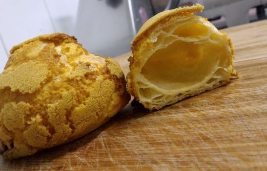 Pasta Craquelin alla curcuma 200 gr burro 200 gr zucchero a velo 200 gr farina 10gr curcuma Impastare tutti gli ingredienti come una normale pasta frolla e far riposare in frigo 30 min prima dell’utilizzo Stendere la pasta con il mattarello dello sp [...]