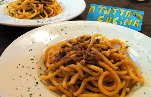Ingredienti: 300g carne macinata d'asino, 400g bigoli di pasta fresca, 80g cipolla tritata, 80g carota tritata, 50g sedano tritato, 1 spicchio di aglio, 150ml vino rosso, 1 cucchiaino di bicarbonato, 3 foglie di salvia, 1 rametto di rosmarino, 1 cucchiaino di prezzemolo tritato, olio, sale, pep [...]