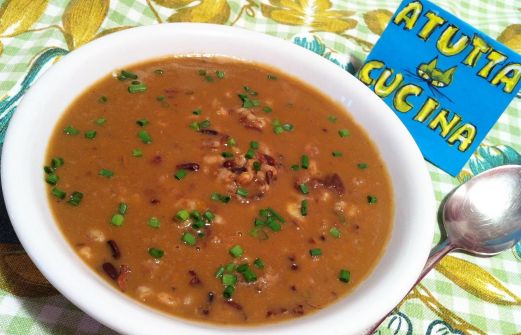 Ingredienti: 180g orzo perlato, 200g fagioli rossi lessati, 60g lardo tritato, 50g cipolla tritata finemente, 4 fili di erba cipollina, 1.3lt brodo vegetale, olio, sale, pepe Ammollare in una ciotola di acqua l'orzo per 1 ora. Mettere in un tegame la cipolla con il lardo e 1 cucchiaio di o [...]