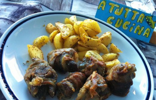 Ingredienti: 800g bocconcini di maiale, 200g pancetta tesa a fette, 1kg patate a spicchi, 1 cucchiaino colmo di origano, olio, sale, pepe Tagliare la pancetta a striscioline per lungo e avvolgerla attorno ai bocconcini di carne, facendole fare due giri; adagiare man mano i bocconcini uno a [...]