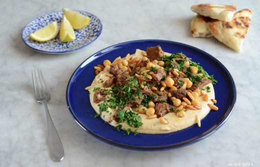 Conoscete l’ hummus kawarma ? Si tratta di una specialità libanese a base di hummus guarnito con pezzi d’agnello fritti, una profumata salsa al limone ed una pioggia di pinoli croccanti.