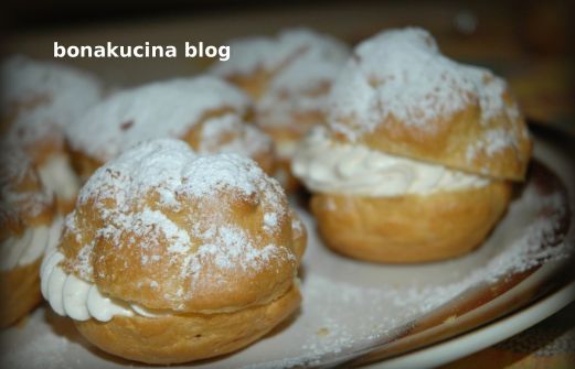 Per i bigne: 5 uova 150 gr farina 150 ml acqua 100 gr burro sale Mettere acqua, burro ed un pizzico di sale in una pentola mettere sul fuoco e portare in ebollizione aggiungere la farina (tutta in una volta) e mescolare quando l'impasto si stacca dalle pareti della pentola è pronto [...]