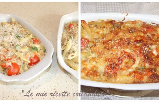 INGREDIENTI per 3 persone 200 g di penne 45 g di bacon a fette 40 g di scalogni 160 g di lenticchie lessate 1 zucchina 1 carota 150 g di pomodorini brodo vegetale q.b olio evo per la besciamella: 225 g di latte 150 di panna 35 g di farina 35 g di burro 50 g di tale [...]
