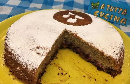 Ingredienti: 350g ciliegie denocciolate, 250g farina di riso, 200g zucchero, 180ml latte, 3 uova, 80ml olio di semi, 50g zucchero di canna, 7g lievito per dolci, 2g cannella in polvere, zucchero a velo